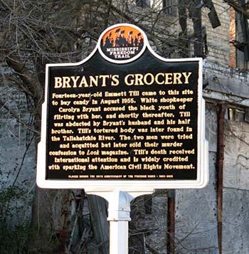 The Mississippi Freedom Trail Marker is located in Money, about nine miles north of Greenwood. Fourteen-year-old Emmett Till came to this site to buy candy in August 1955. White shopkeeper Carolyn Bryant accused the black youth of flirting with her, and shortly thereafter, Till was abducted by Bryant’s husband and half-brother. Till’s tortured body was later found in the Tallahatchie River. The two men were tried and acquitted, but later sold their murder confession to Look magazine. Till’s death received international attention and is widely credited with sparking the American Civil Rights Movement.