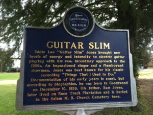 Guitar Slim was the hottest name in the blues world in 1954 when he burst out of New Orleans with the smash hit “The Things That I Used to Do,” but in the Mississippi Delta where he was born and raised, people still knew him as Eddie Jones, a choir boy turned jitterbug dancer. During his teenage years, Slim worked in cotton fields and spent his free time at juke joints, where he began performing as a singer and dancer. He was so talented at dancing that he earned nicknames like “Limber Leg Eddie” or “Rubber Legs.”
