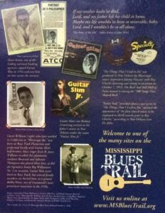 Currently, there are eight MS Blues Trail markers in Leflore County, which include Robert Johnson’s gravesite, B.B. King’s birthplace, Hubert Sumlin, Elks Hart Lodge No. 640, Baptist Town, Guitar Slim, Furry Lewis and the WGRM Radio Station. When the Blues Trail is complete, it will consist of more than 100 historical markers throughout the state that note significant places and faces in the story of America’s music.