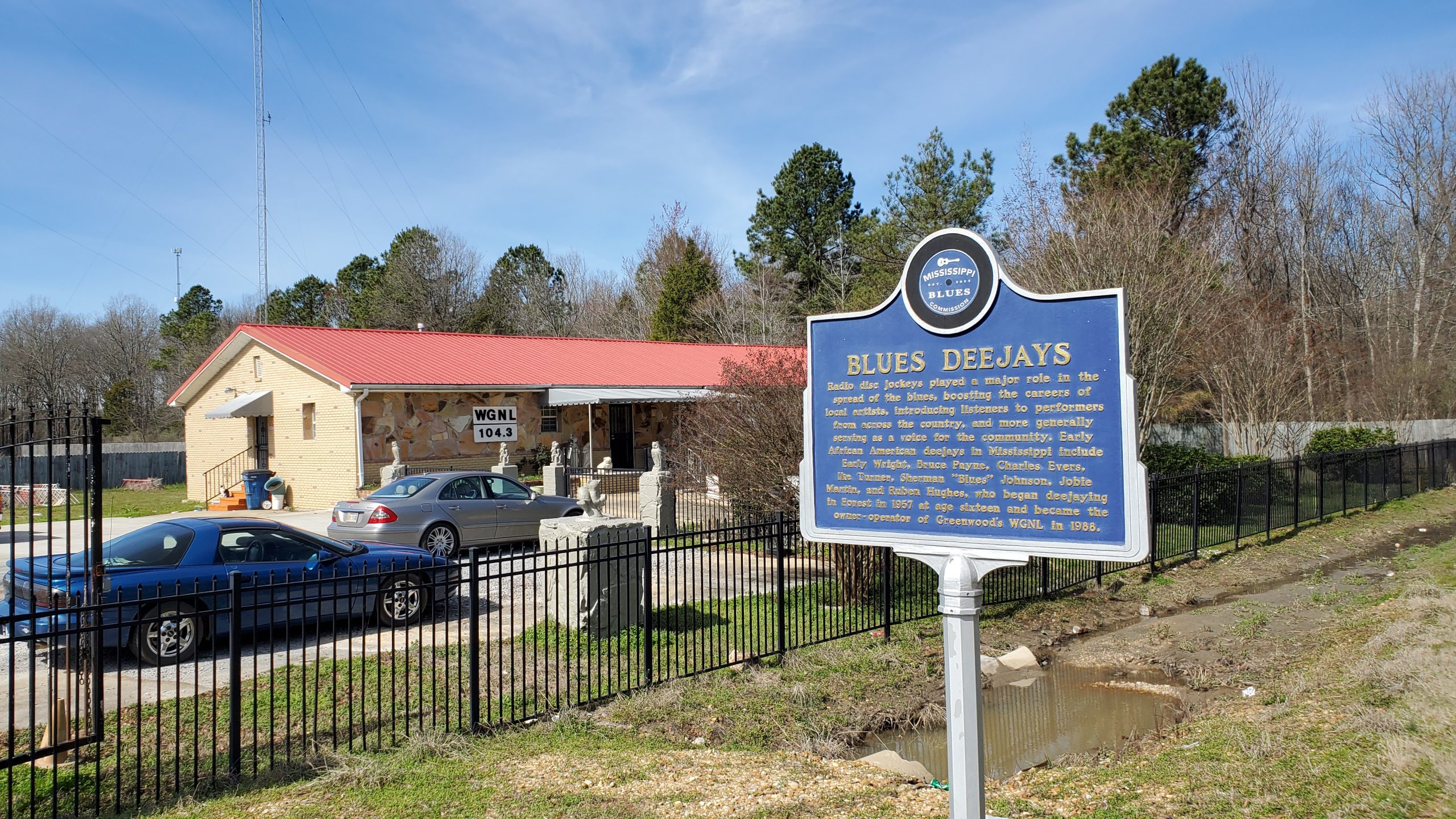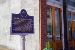 The WGRM Blues Trail marker in Greenwood, Mississippi, commemorates the legacy of WGRM, a radio station crucial in preserving and promoting blues music. Located in downtown Greenwood, near Howard Street, this marker pays homage to the pivotal role of WGRM in amplifying the blues across the Delta region. The station served as a beacon for blues enthusiasts, broadcasting the soulful tunes of local and legendary blues artists, ensuring the genre’s recognition and longevity. One of the most famous blues artists of our time, B.B. King, was born in LeFlore County, and his voice was first broadcast on Greenwood’s WGRM radio station in 1944. The marker highlights the station’s historical significance, honoring its dedication to preserving the rich cultural heritage of the blues. Visitors can explore this marker and reflect on the profound impact of WGRM, appreciating its integral role in fostering the appreciation and preservation of blues music in the region.