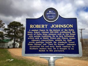 The Robert Johnson Blues Trail marker is a poignant tribute to the enigmatic blues legend whose influence on music remains unparalleled. Located at the intersection of Money Road and U.S. Route 61 in Greenwood, Mississippi, this marker signifies a pivotal moment in blues history. It marks the crossroads where, according to legend, Johnson made a deal with the devil, exchanging his soul for mastery of the guitar. This intersection holds an almost mystical significance in the blues narrative, symbolizing the intersection between folklore, music and the enduring legacy of Robert Johnson. The marker encapsulates snippets of Johnson’s life and musical impact, celebrating his short but monumental career and his profound influence on the blues. Visitors stand at this crossroads, feeling the weight of Johnson’s mythology and his unparalleled contributions to music, making it a must-visit location for blues enthusiasts and those curious about the origins of this iconic musician’s legend.