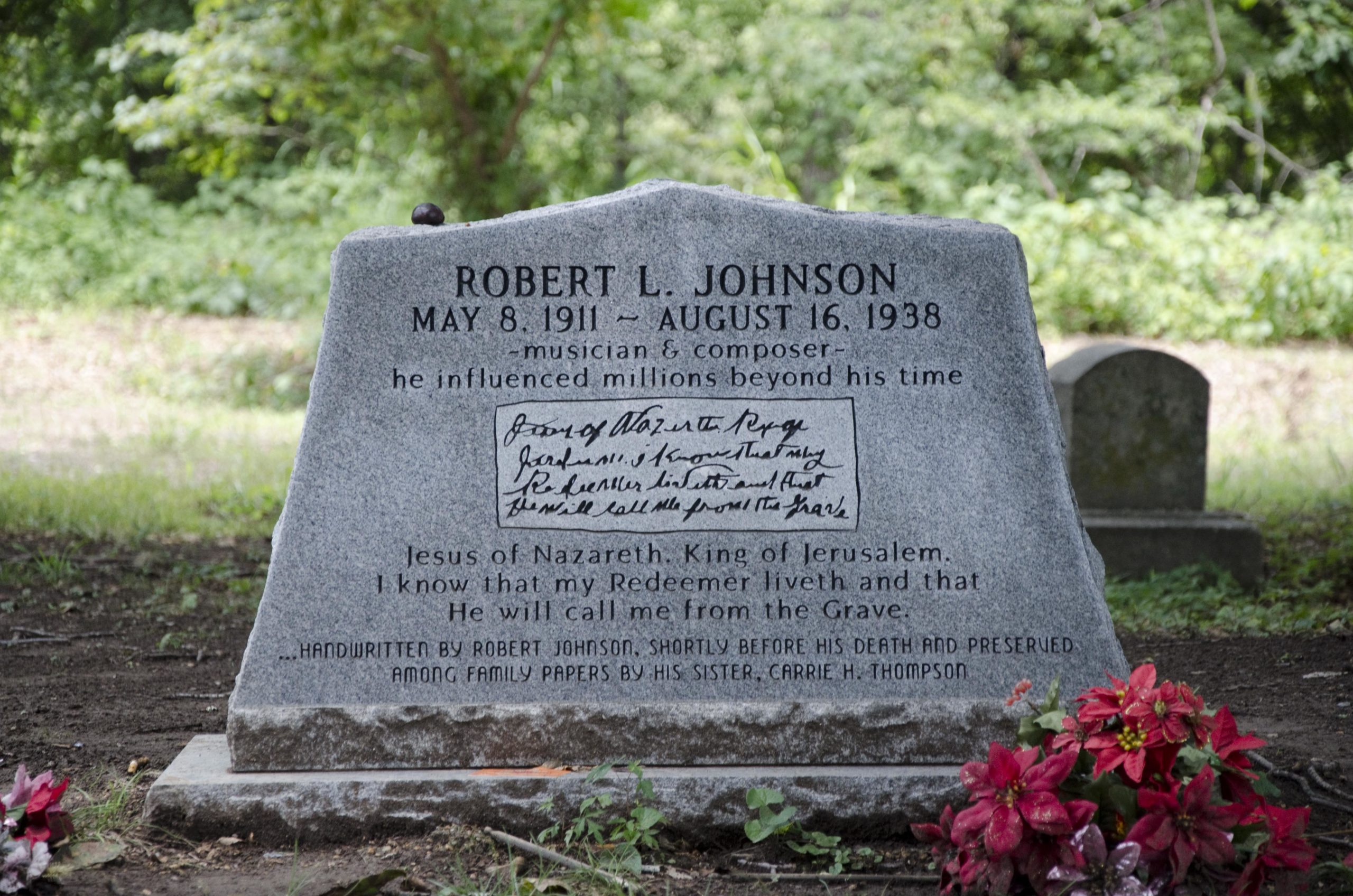 In 2002, a gravestone was erected at the Little Zion Missionary Baptist Church on Money Road north of Greenwood. This sight, established by an eyewitness to the burial, is considered the most reliable and is an official stop on the Mississippi Blues Trail.